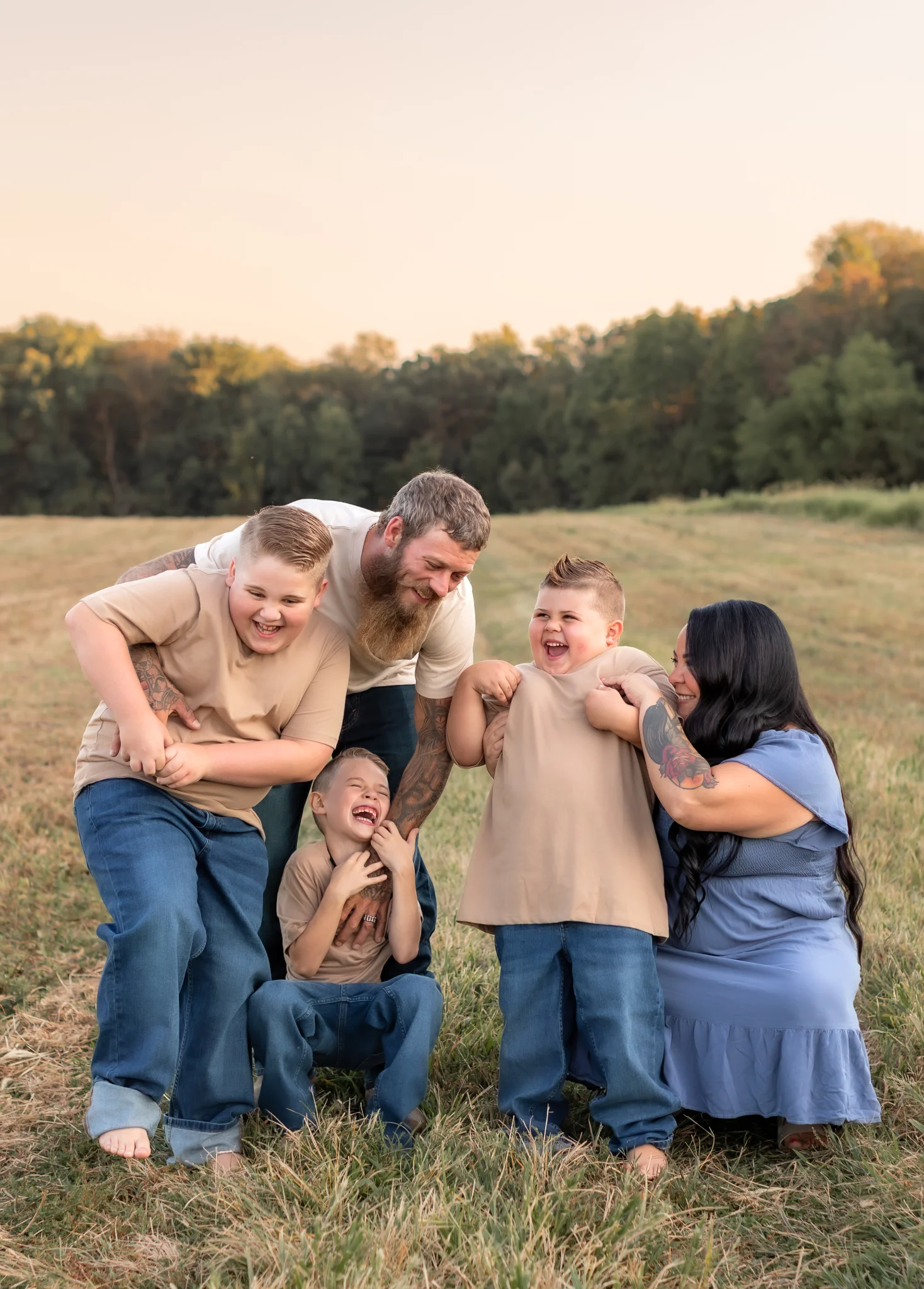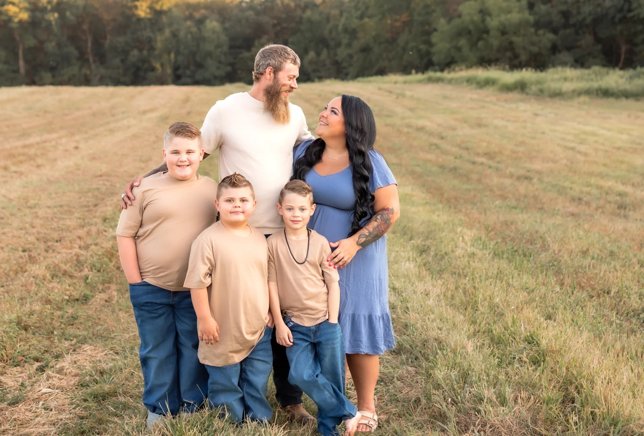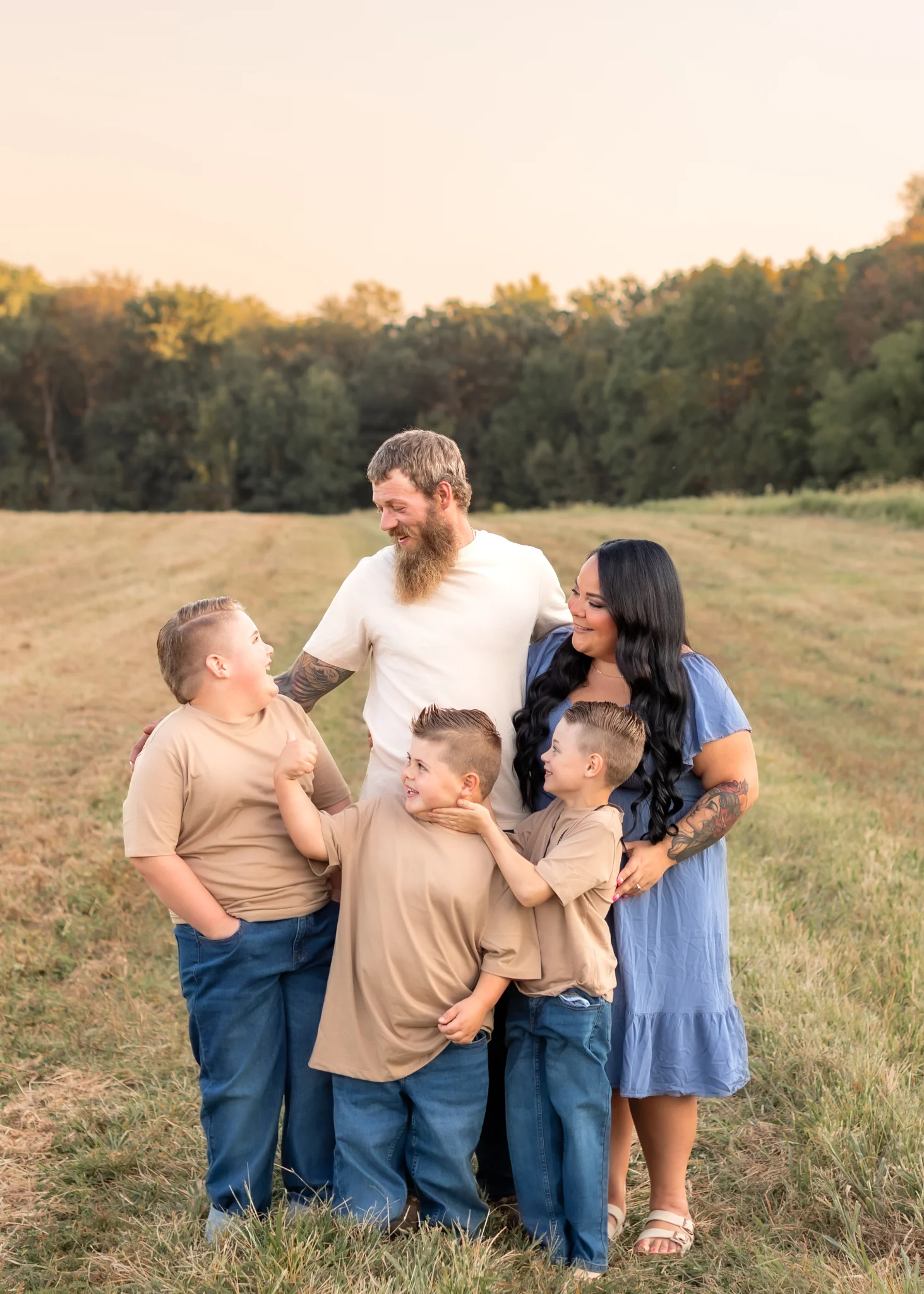 I loved that idea so much. Ten years, three boys, and a whole lot of life later, it felt like the perfect time to capture this season for their family. You’d never know it has been a decade since their last photos since they were absolute naturals in front of the camera. Everything about this session was a dream, from the laid-back energy the Fiorenza family brought to the beautiful land we shot on. These images truly tell the story of love, laughter, and the kind of bond that only grows stronger with time.